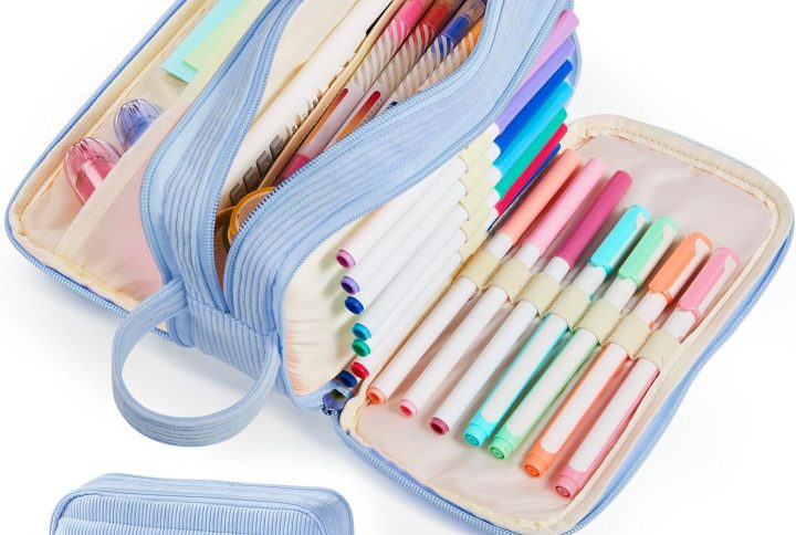 - Sandwich Cover Design & Shape Support, Quadruple Protection: 3-layer design on cover: The outer layer is premium oxford cloth with water-resistant inner coating, protects your pencil or pen from sudden water splash.The middle layer with thick foam board, prevents your stationery from shocking. The inside lining with is high density polyester, avoids tearing up in daily use. Extra built-in shape support system, keeps this pencil case in good shape, cushions it from bumps and crashes.